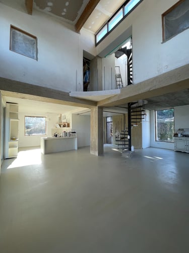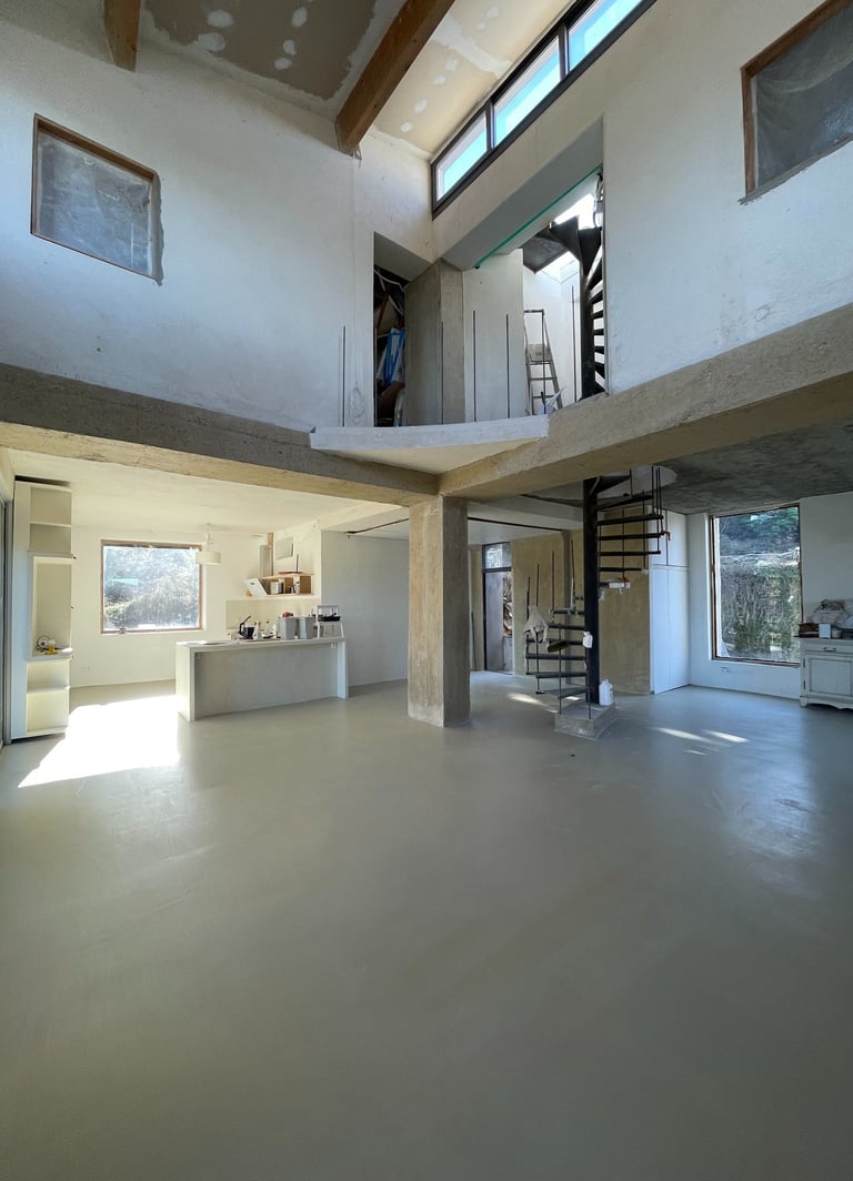 A project of a polished concrete floor and stucco wall, in Camargue in France