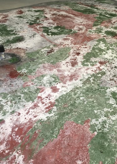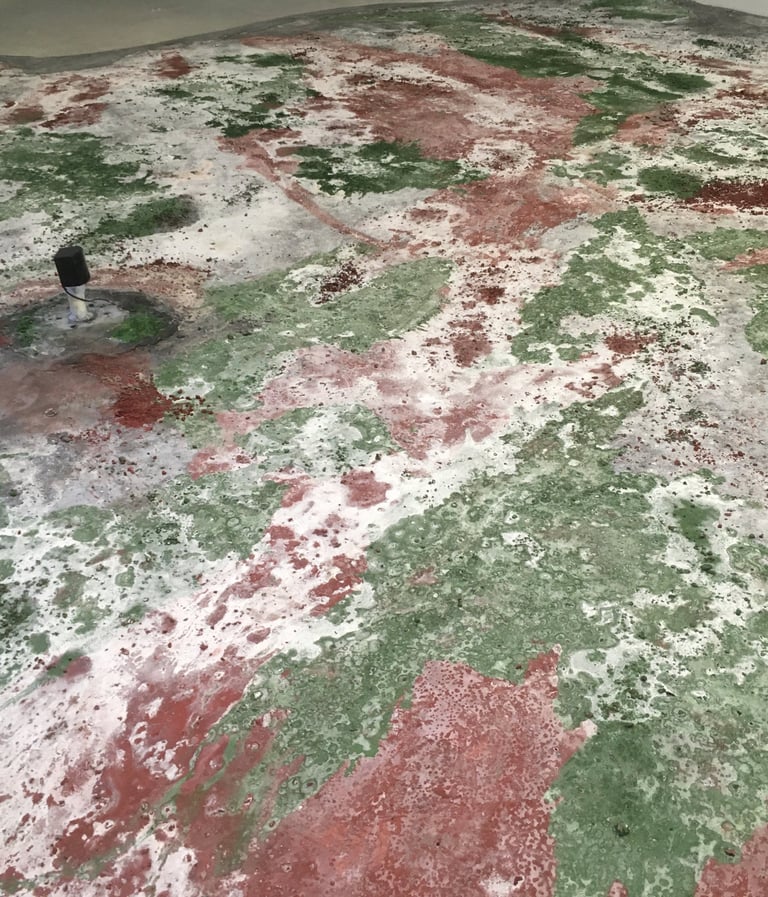 For this artist, we created floors inspired by the soils of the Camargue, with intense red and green colors and salt efflorescence.